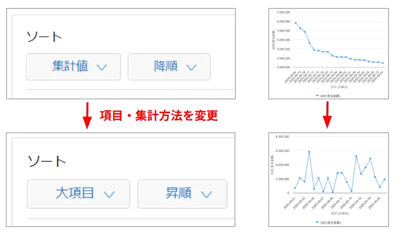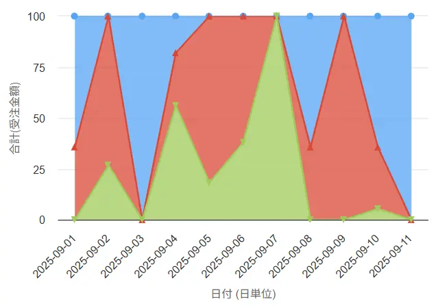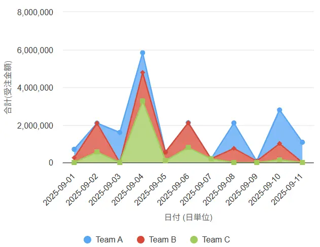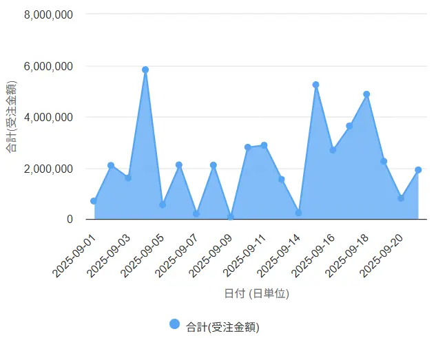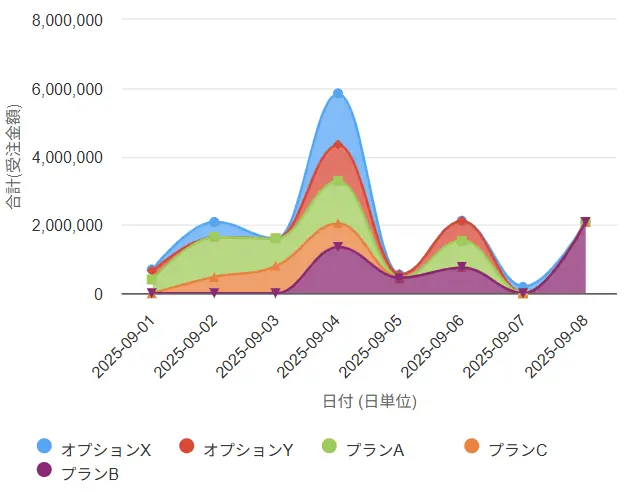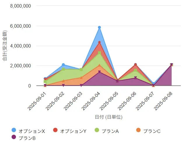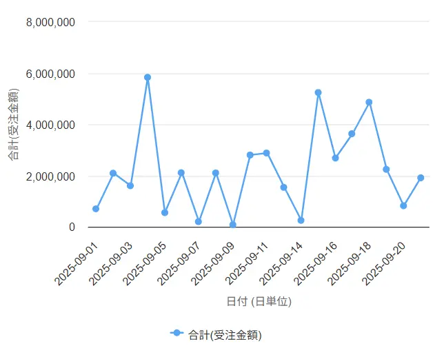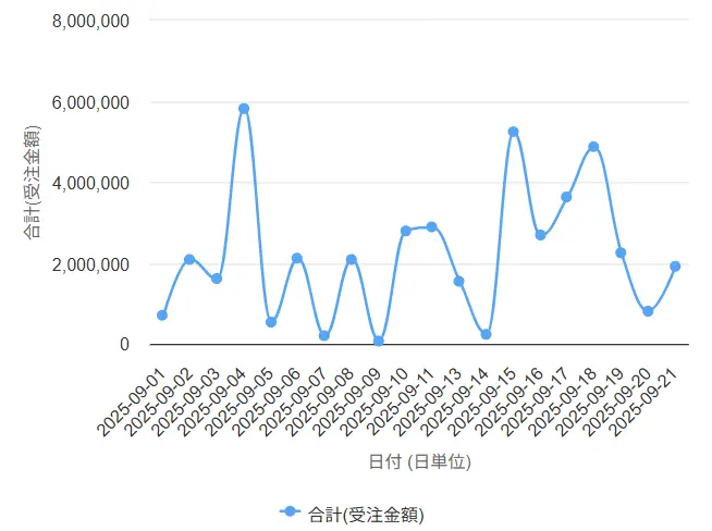 上記の例では、売上発生日ごとの売上数値の変動を示しています。数字をこのように表現することで、「特定の時期に売上が落ちやすい」などの分析に役立てられるでしょう。