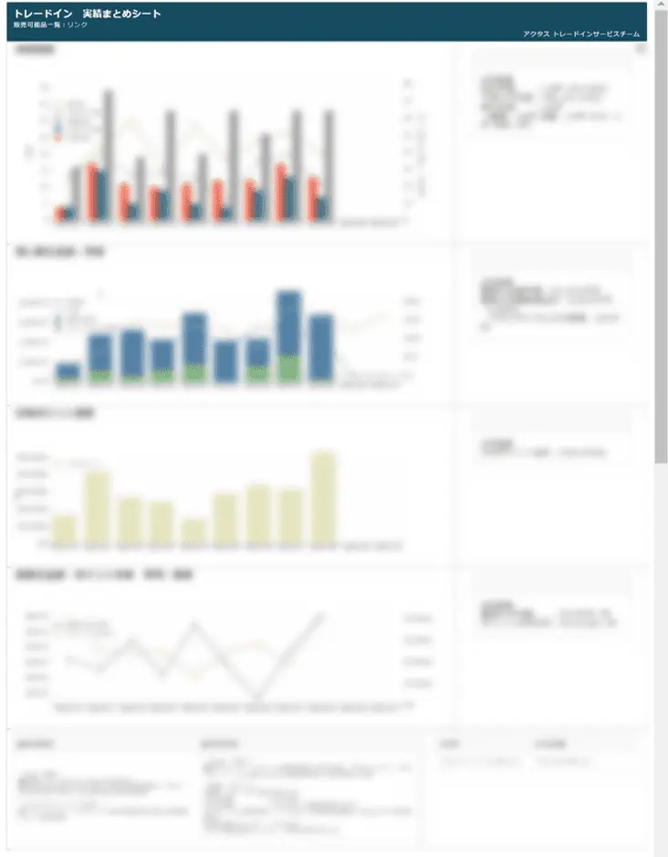 実際に株式会社アクタス様では、kViewerの「高度なグラフビュー機能」を使って、家具下取りサービスの実績管理ページを作成しました。月ごとの依頼件数や成約件数などを視覚的に把握することが可能になり、業務改善策を検討する際の重要な資料として活用されています。