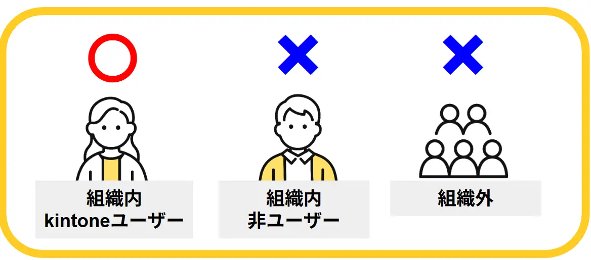 また、kintone上のデータは組織内のkintoneユーザー間でしか共有できないことにも注意が必要です。