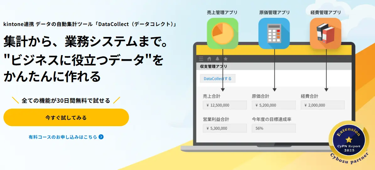 まず紹介するのは、kintone内にあるデータを横断して活用できるデータ自動集計ツールDataCollectです。