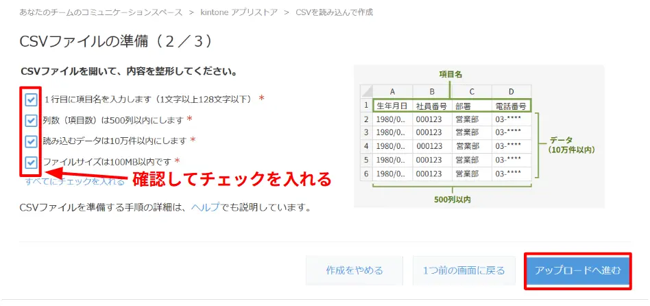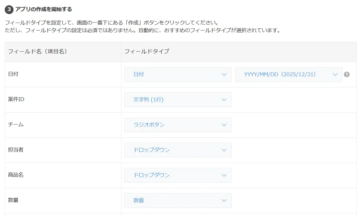 ダウンロードしたデータを見ながら作成を練習できるので、作成に不慣れな方はぜひkintoneの画面を開いて、一緒に作成してみてください。