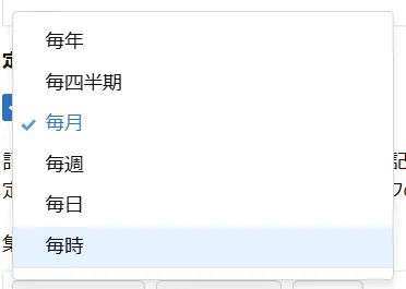定期レポートの記録頻度は、以下の6パターンの中から任意のものを選択できます。