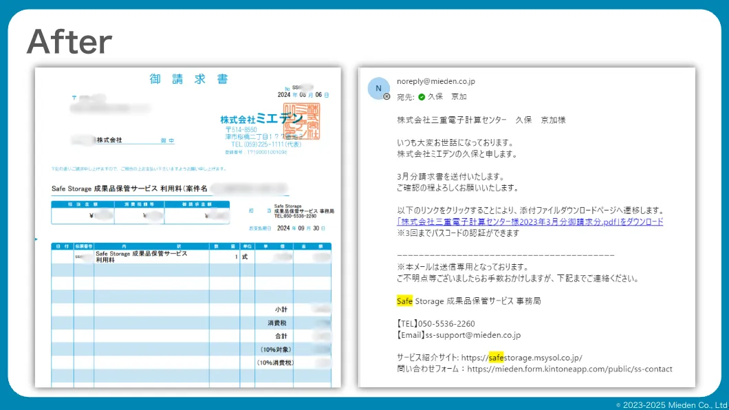 結果的に、請求書の入れ間違いなどといった人的ミスの防止にも成功しています。