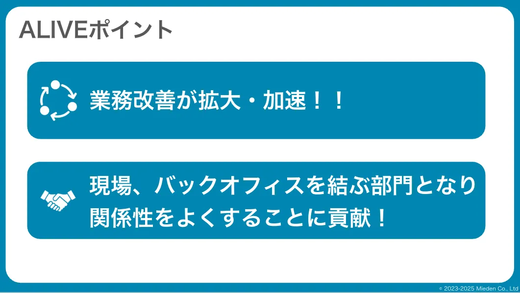 今回の事例でのALIVEポイントをお伝えします。