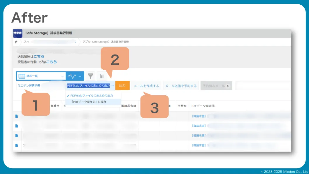 こうすることで、各レコードの請求書データが、それぞれの添付ファイルフィールドに自動で保存されます。