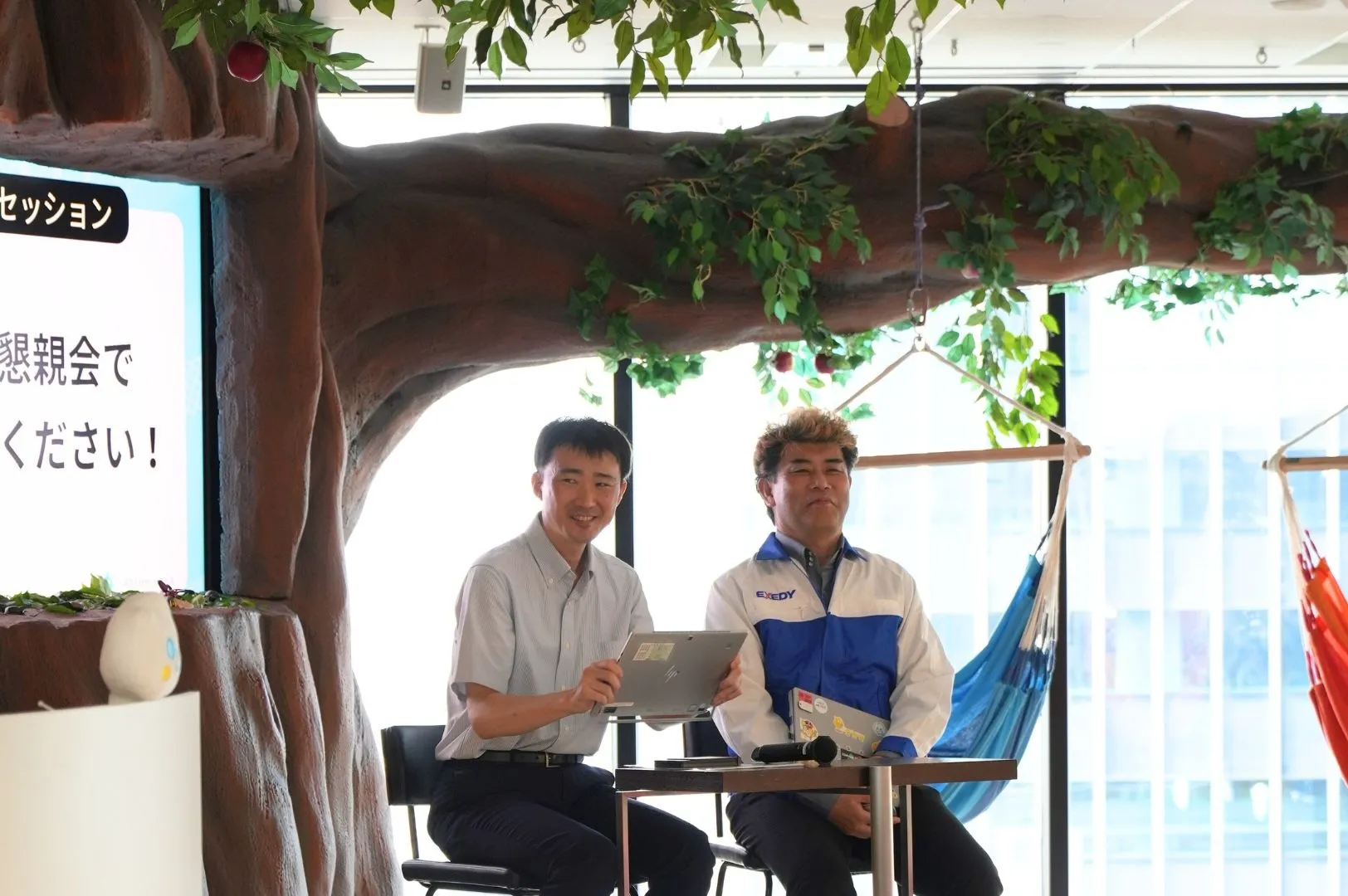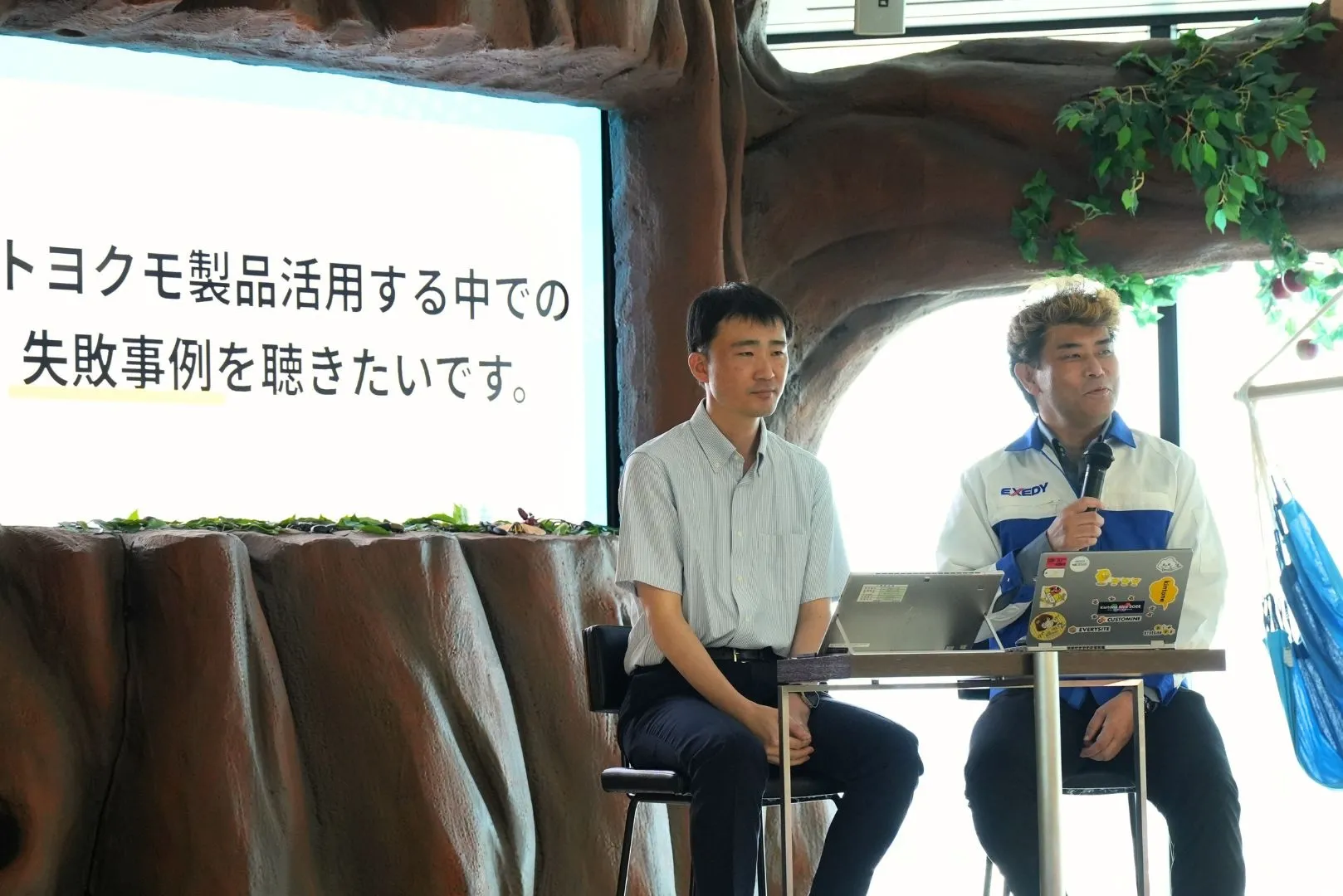 今回は、新幹線メンテナンス東海株式会社 朝田氏、株式会社エクセディ物流 有田氏、ファシリテーターとしてkintoneエバンジェリストのkinbozu株式会社 瀧村氏にご登壇いただきました。
