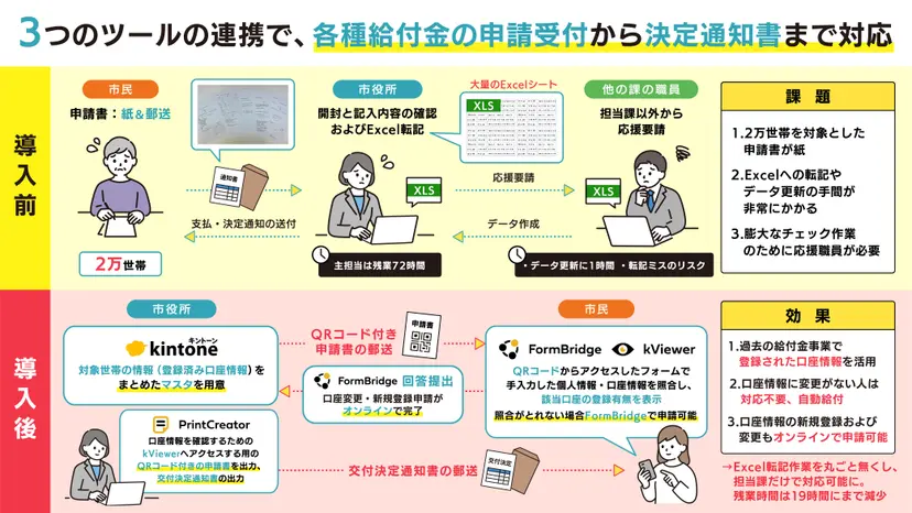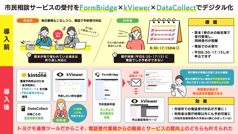 >事例記事:神戸市役所がkintone x フォームブリッジの導入で電話問い合わせを大幅削減、残業時間を100時間以上削減できた