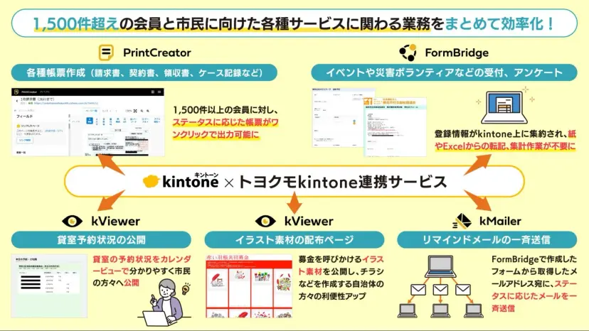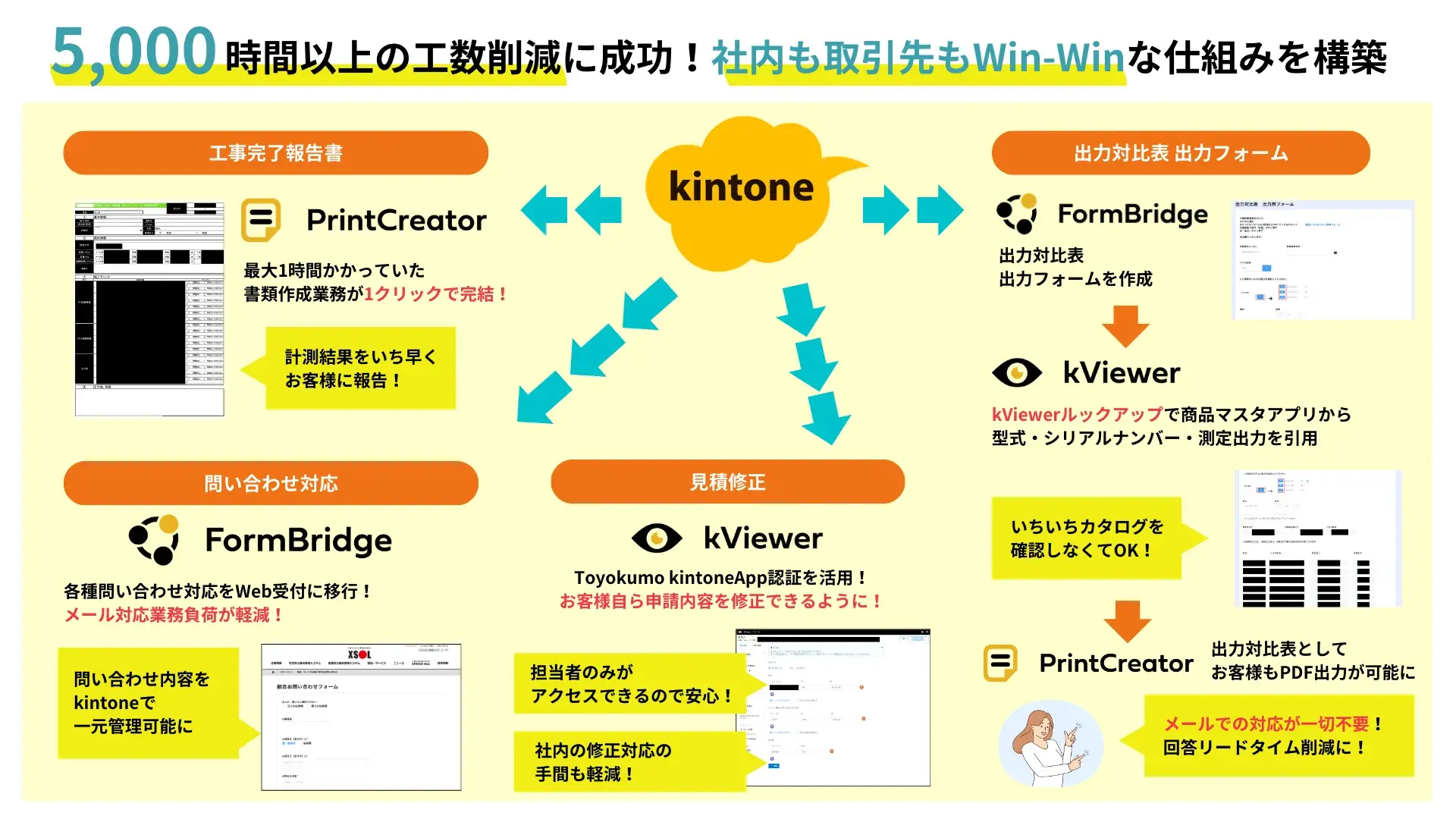 >事例記事:kViewer × FormBridge × kMailerの業務アプリが工数削減&新案件獲得の好材料に!kintoneとトヨクモkintone連携サービスをフル活用した4つの事例
