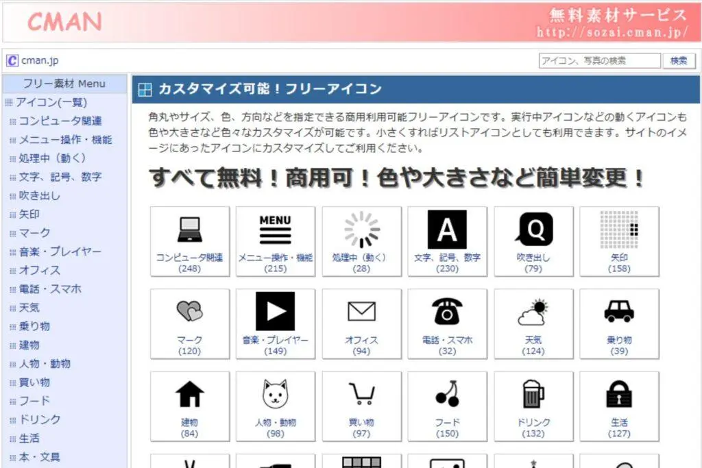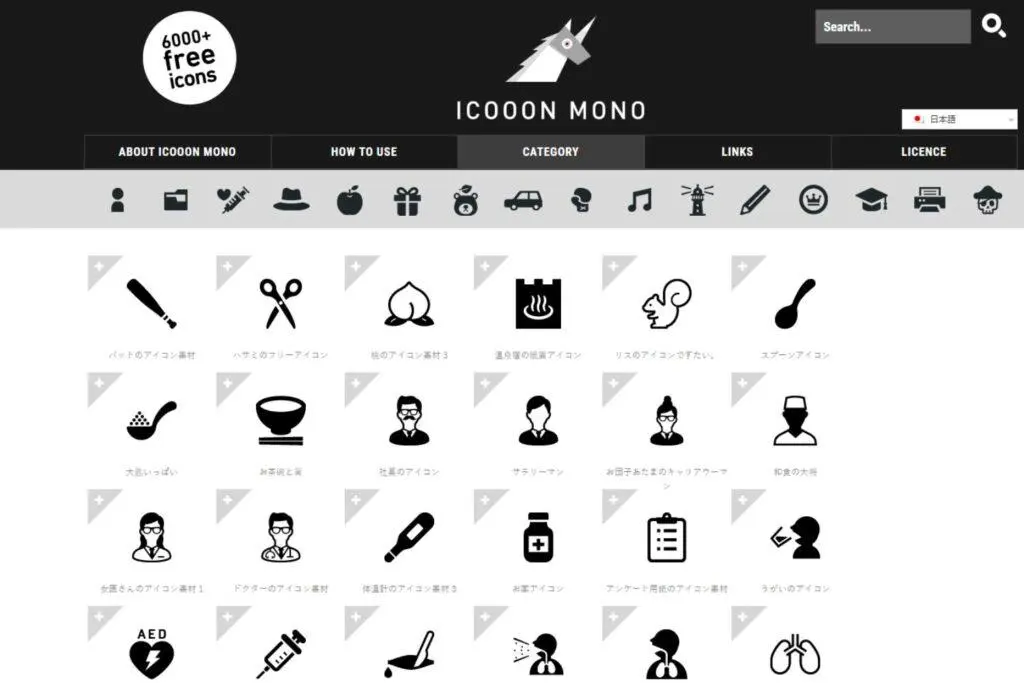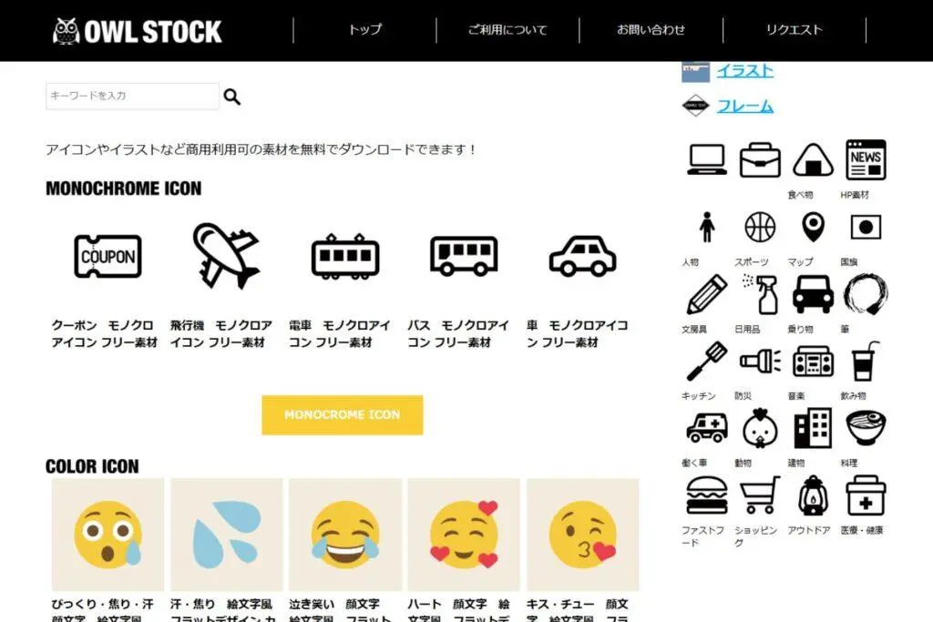 ICOOON MONOは、シンプルで使いやすいアイコンが豊富にあるサイトです。
