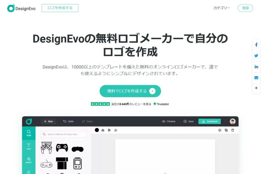 DesignEvoはロゴ制作ができるサイトで、多くのテンプレートが用意されています。