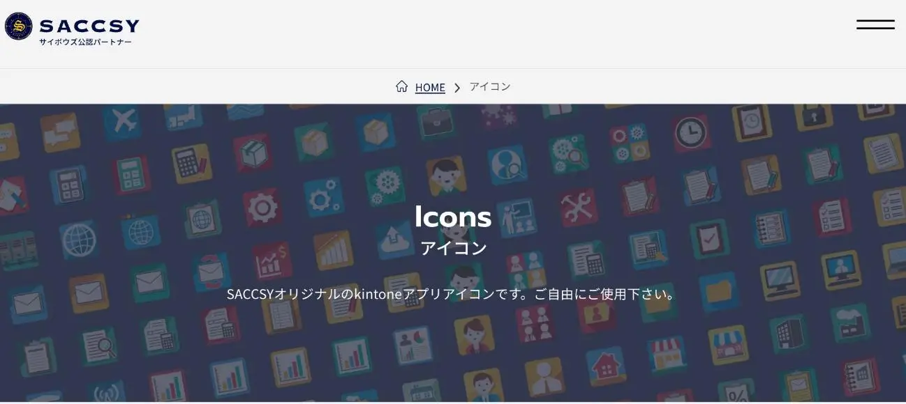 SACCSYは、サイボウズ公認パートナーのアイコンダウンロードサイトです。100以上のアイコンは、「人」「デジタル」「帳票」などでカテゴライズされているため、探しやすいのが魅力です。