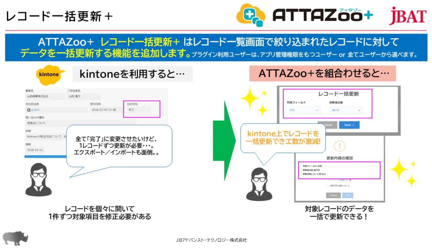 また、kintoneのレコードを一括更新するためのプラグインも提供されています。