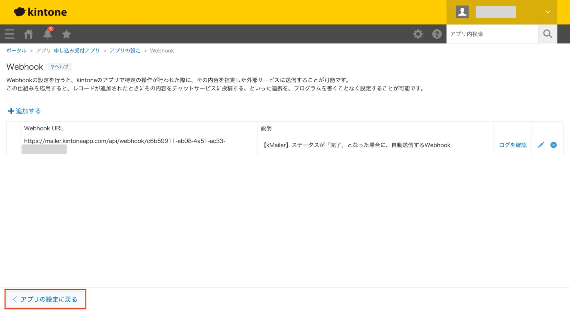 「アプリの設定に戻る」をクリックし、アプリの更新まで行ったら設定完了です。