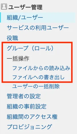 ※他のアクションは、cybozu.com ヘルプの「組織」を参照 |