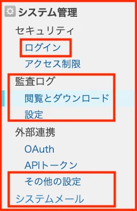 監査ログと比較して分かりにくいと感じる人は「cybozu.com共通管理の画面左側の設定メニュー」と照らし合わせて、操作のログを確認してみてください。