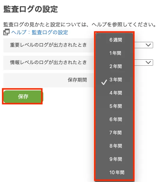 また、監査においては、契約書のデータや証憑書類にかかわる証跡の保存期間が3年や5年と長いものも存在します。そのため、監査時にログを提出する場合は、自社の内部・外部監査の要件に応じた保存期間を決めておくことが望ましいでしょう。