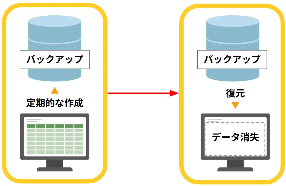 データを定期的にバックアップしておくことで、万が一のデータ消失などの際にも、バックアップした段階に復元することができます。