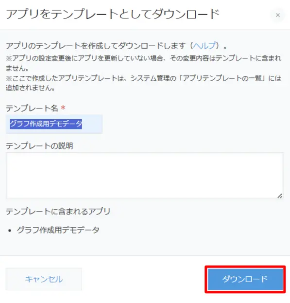ダウンロードの前に以下のような画面が開くので、どのアプリのバックアップなのかわかりやすいようにテンプレート名や説明を入力したら「ダウンロード」を押してください。