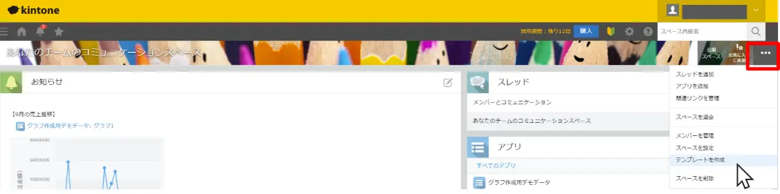 まずは、スペースのテンプレートをkintone内に保存するやり方です。