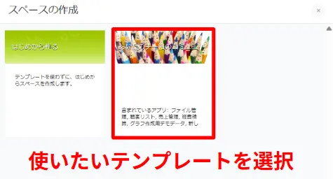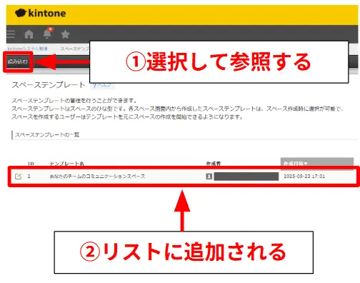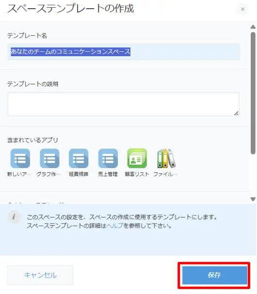 これで、スペースのテンプレートがkintone内に保存できました。