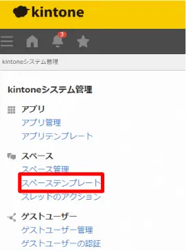 | kintone外にテンプレートがある場合 | (1)「システム管理」内「スペーステンプレート」をクリックし、スペーステンプレート画面を表示