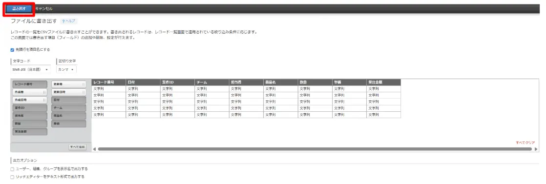 | ・CSVとしてレコードを書き出す