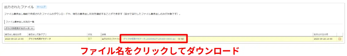 CSVの書き出し後、ダウンロードできる期限は3日間です。