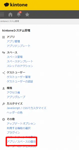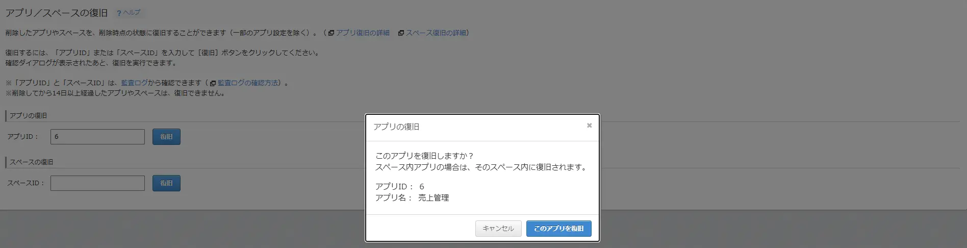 | ・管理者権限で削除したアプリやスペースを復元する(削除から14日以内)