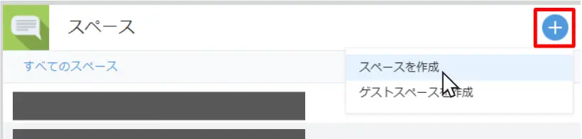 | (3)スペースエリアの 「+」アイコンをクリックし、「スペースを作成」を選択 | ![]() |