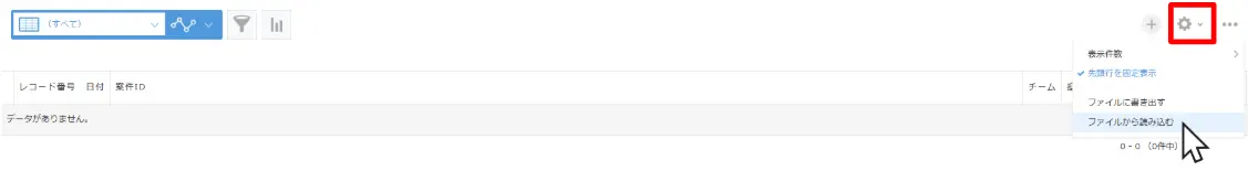 まずは、復元したいアプリの右上の歯車のマークの中から、「ファイルから読み込む」を選択してください。