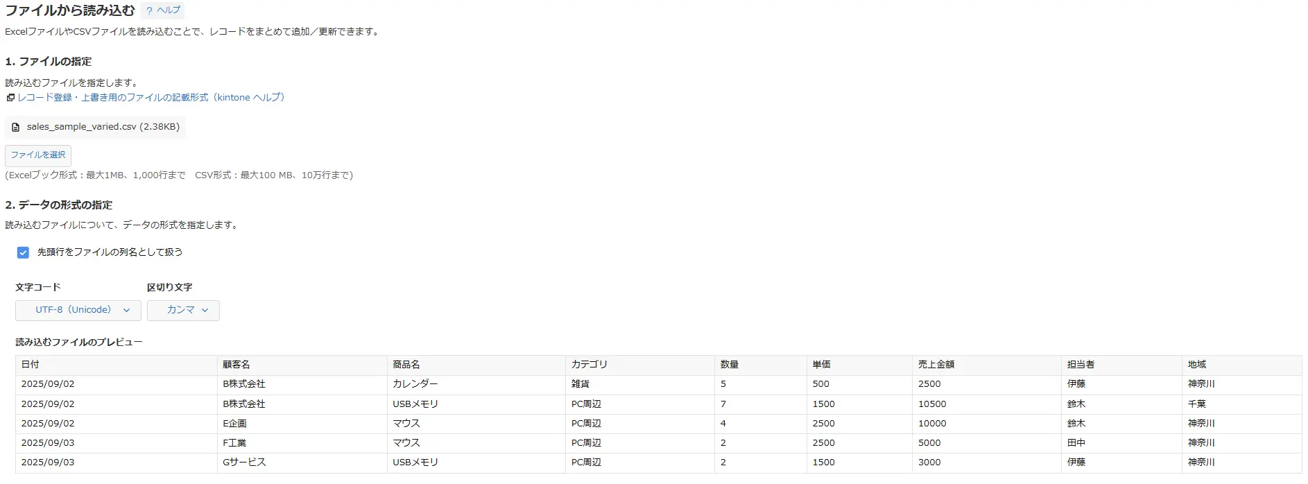 「読み込む」をクリックすると、ファイルのインポートが開始します。