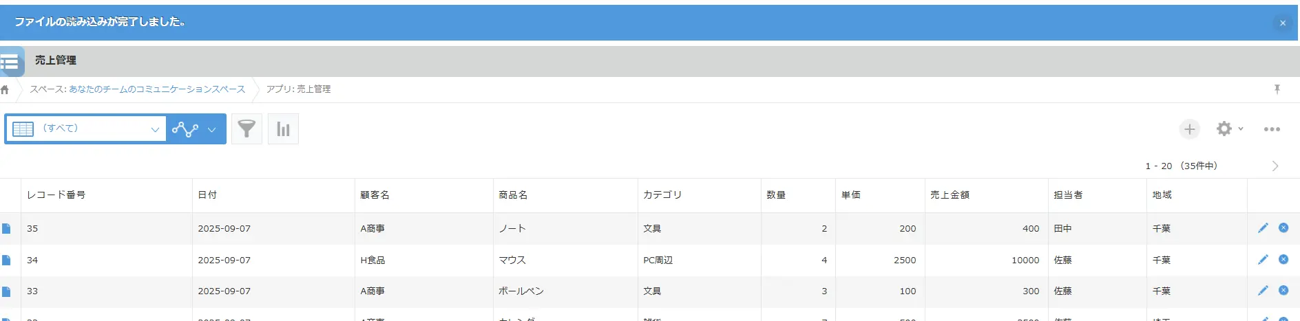 「ファイルの読み込みが完了しました」と表示されれば、インポートは成功です。