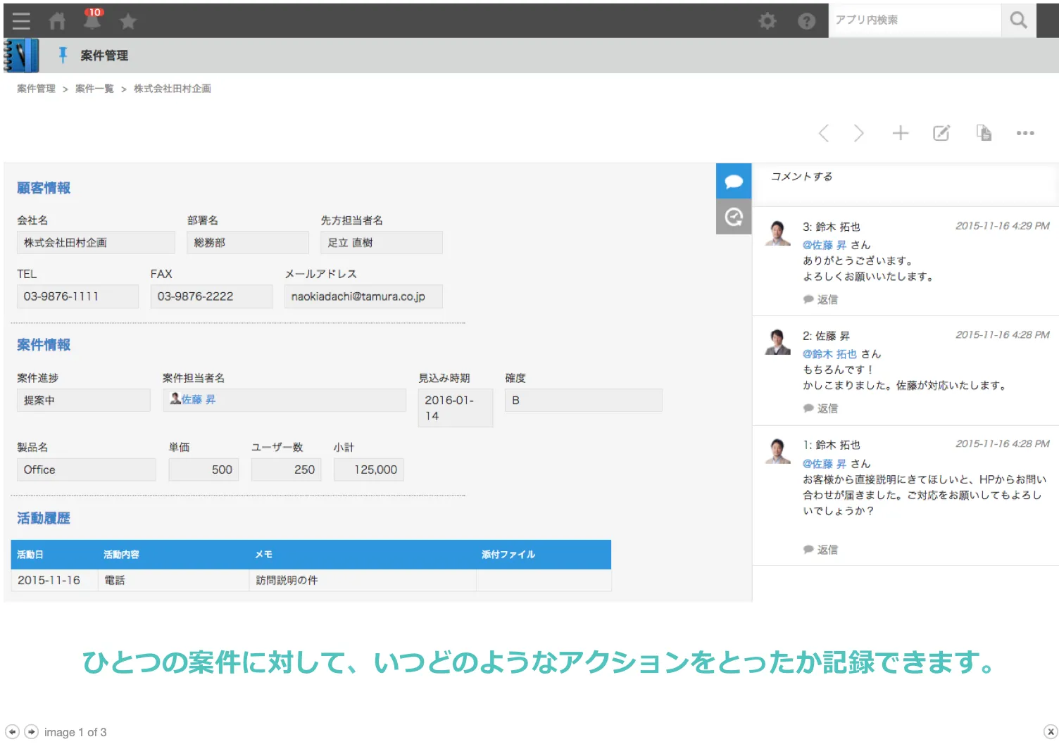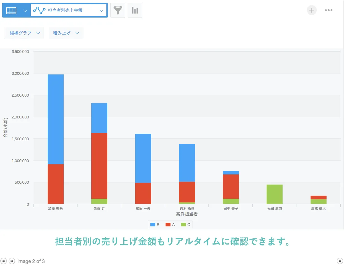 チーム内で最新の顧客情報をリアルタイムに一括管理できるため、対応漏れを防ぎ、データ分析に基づいた戦略的なセールス活動が可能になります。