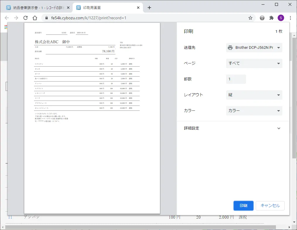 kintoneからかんたんに美しく印刷できる方法 画像