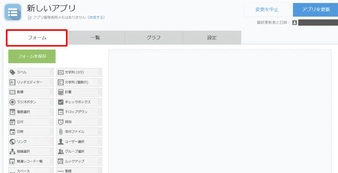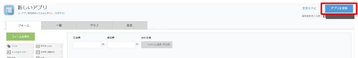 まずは、計算式を使うアプリのフォーム画面を開きます。