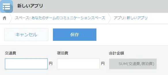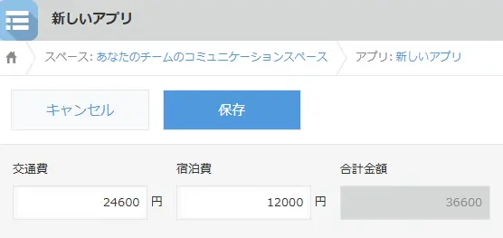 アプリ内の数値や文字列を計算する | 「交通費」「宿泊費」などを入力し、自動で合計を計算する |