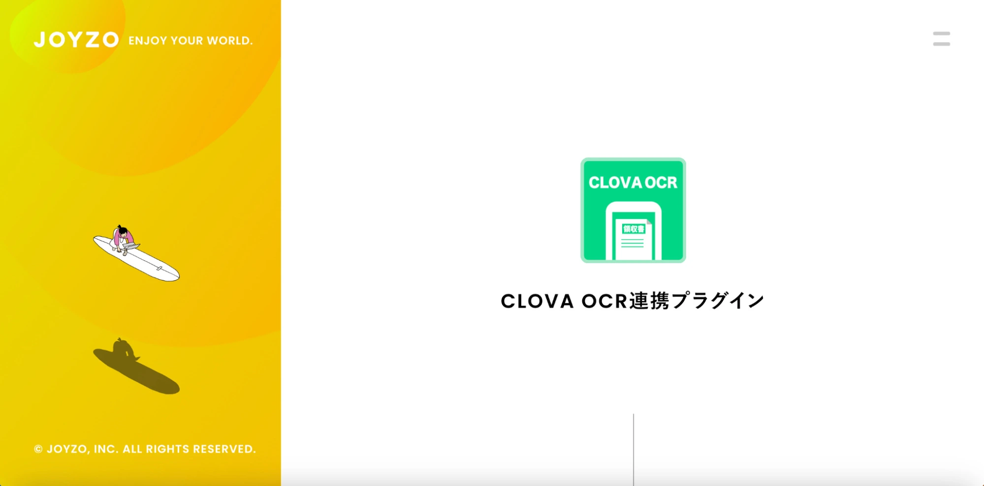 CLOVA OCR連携プラグインは、LINE CLOVAのAI技術を活用した文字認識サービス「CLOVA OCR」とkintoneを連携するプラグインです。