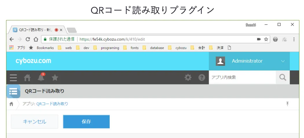 kintoneの基本機能では、QRコード・バーコードを読み取ってアプリやレコードを開いたり、kintoneのデータをもとにQR・バーコードを生成することはできません。