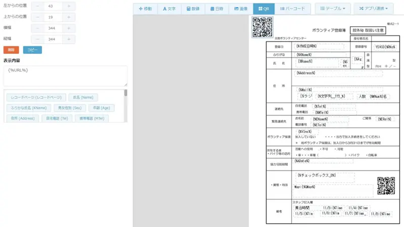 また、kintone内のフィールドに登録されている情報を使って、QR・バーコードを生成でき、帳票や資料などに二次利用することも可能です。