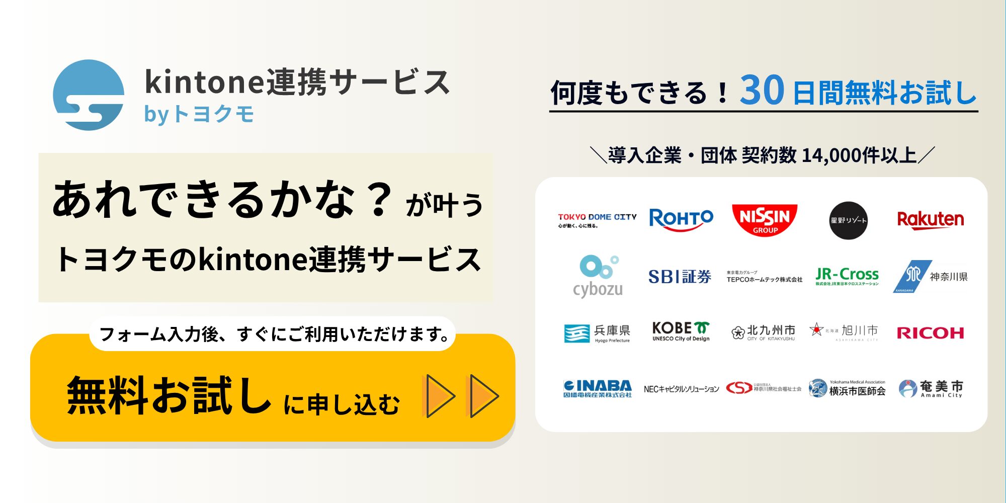なお、トヨクモが提供している上記のサービスは、すべて30日間無料お試しができます。kintoneを導入する際には、あわせてご活用を検討してみてください。