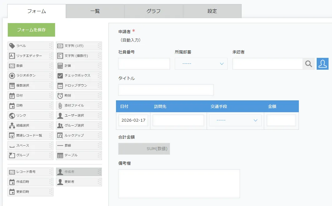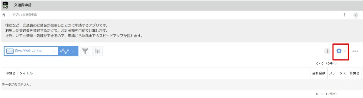 使いたいアプリの設定画面から、自社の業務フローに合わせて設定を変更していきます。ここでは、交通費申請アプリを例に解説します。