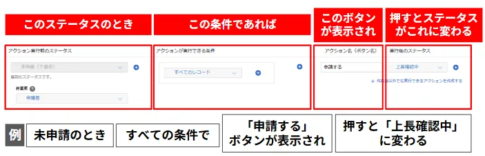 - アクションの分岐は必要か(内容によって「差し戻し」「承認」に分岐させるなど)