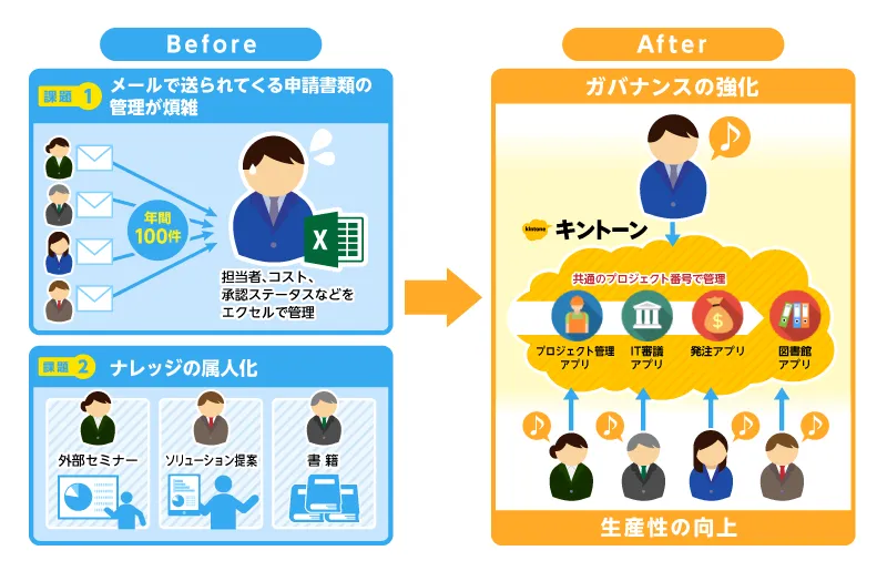 - メールやExcelで管理していた申請業務をkintoneに一元化