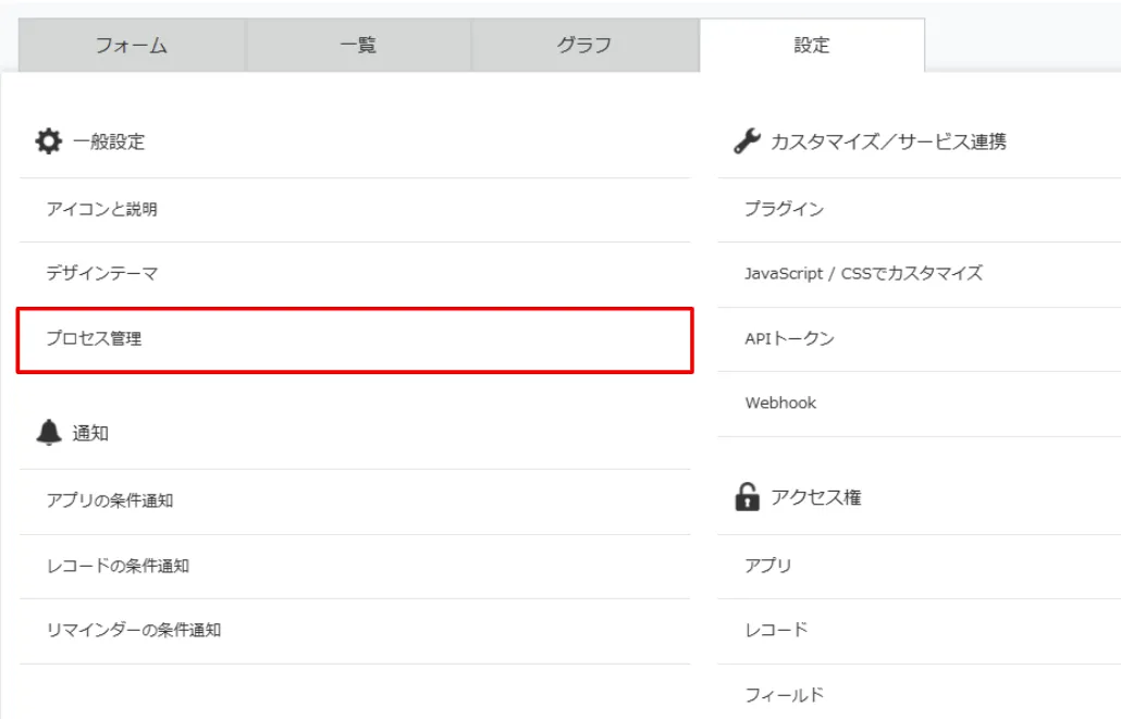 基本機能だけでワークフローを構築する際に設定する「プロセス管理」とは、申請から承認、決裁までの一連の業務フローをkintone上で完結させる機能です。
