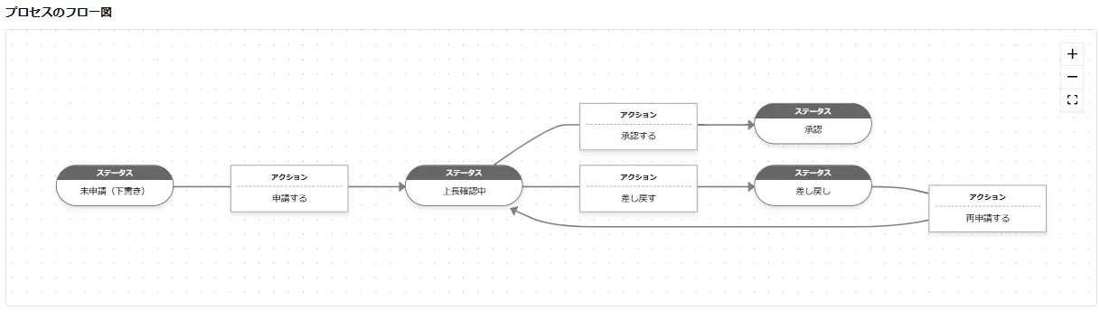 実際のプロセス管理機能の設定画面は以下のように表示され、フロー図を確認しながら、設定していきます。