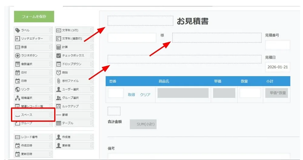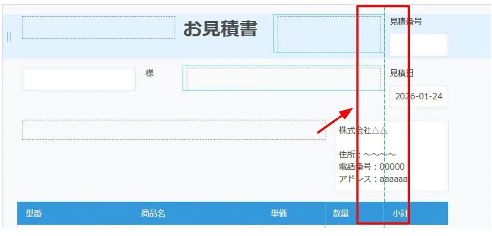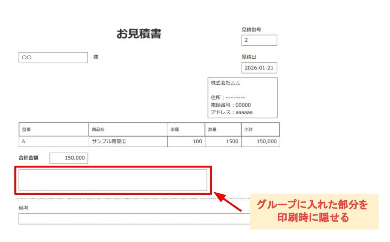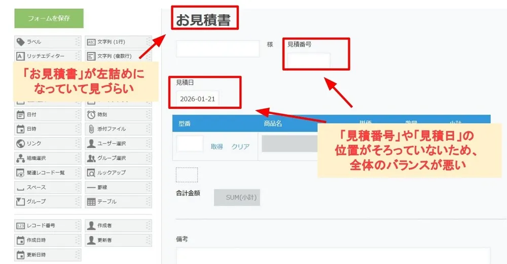 印刷プレビュー画面では、新たに追加したフィールドが表示されてしまっています。この状態のままだとお客様に見積書の送付はできないですよね。