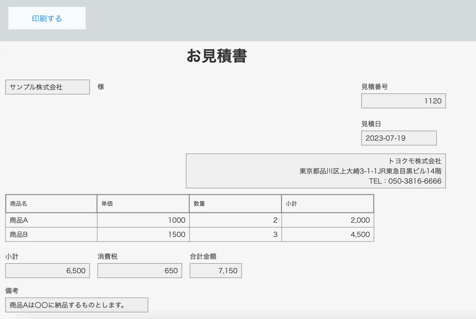 - 見積書や請求書など自社フォーマットでの出力に対応