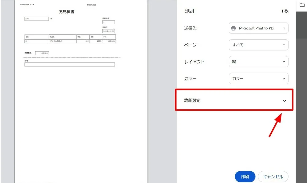 「印刷する」ボタンを押すと以下の画面が表示されます。