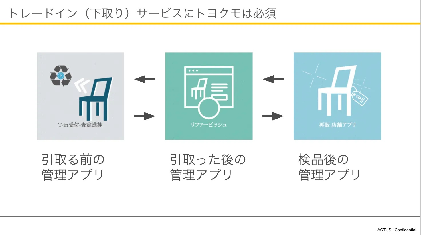というアプリの連携が、家具の下取りにおける一連の業務の流れになっています。