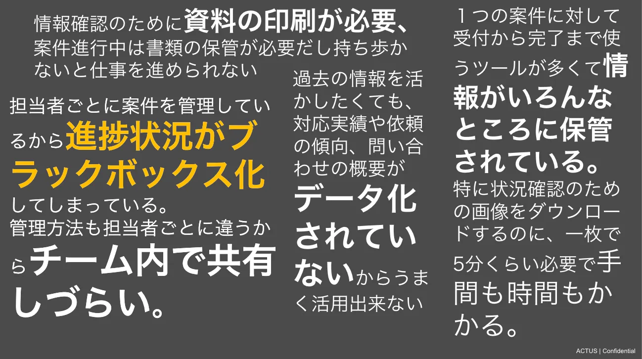 しかし、最初にこの部署を任された時、業務プロセスを考えてみると実は修理業務より項目が多かったのです。そのため当初は、どのように業務効率化を進めるべきか悩みました。